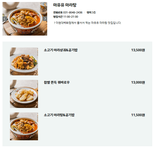 - 더현대백화점의 맛집 마유유 마라탕입니다.