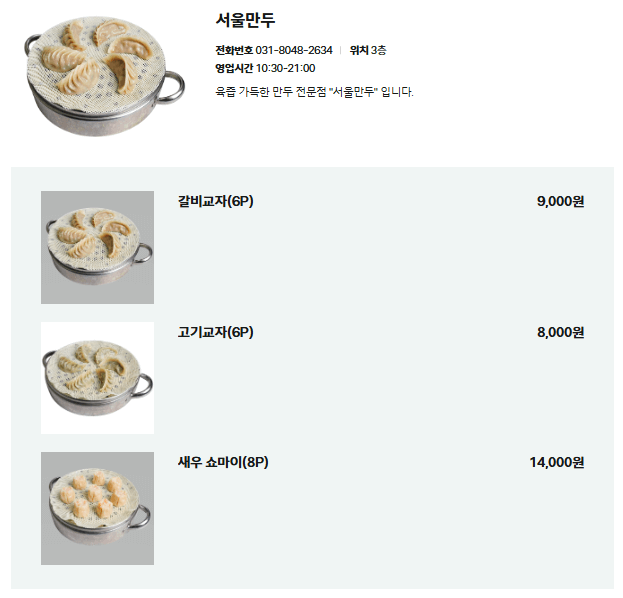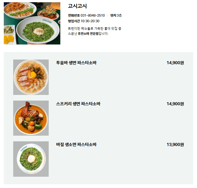 김포현대아울렛 맛집 식당과 푸드코트 메뉴 정보